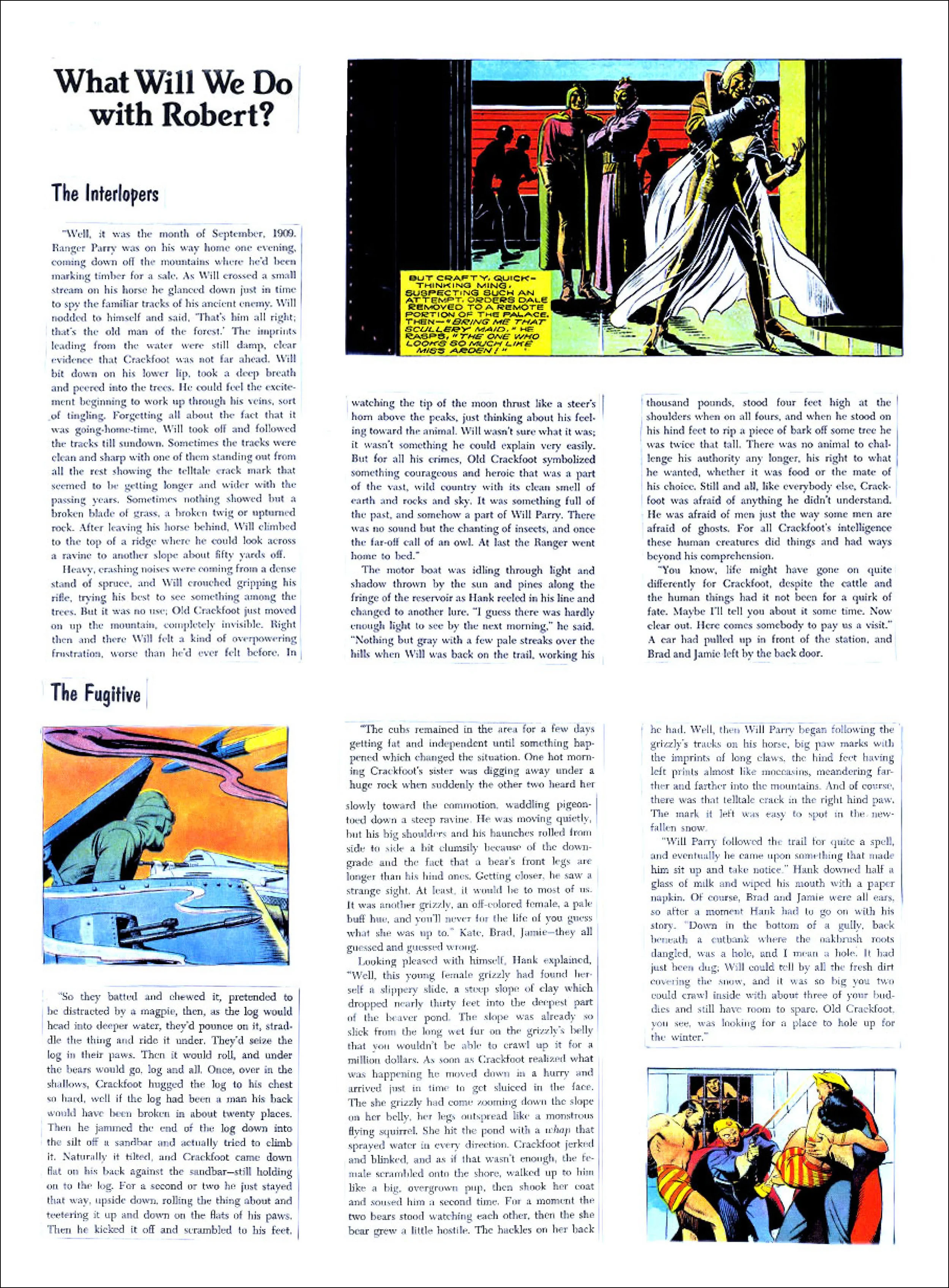 The students were asked to create a cover and page layout collages from 3 found books. The class went to a four story used bookstore where they found a novel that would be used for body copy, a children’s book that would be used as headers, and a third book with images. The criteria for the books were that their typographic style had to be interesting to the students and relate to each other. The content of the books were not important. Students then cut apart the 3 books and on large sheets of newsprint they collaged them into a new layout design. They were encouraged to work intuitively and to experiment with different numbers of columns and page ratio before deciding on the final layout. The project got the students to think about the relationships between typographic styles and to introduce the basics elements of designing a layout before diving into the technical aspects of working in InDesign.