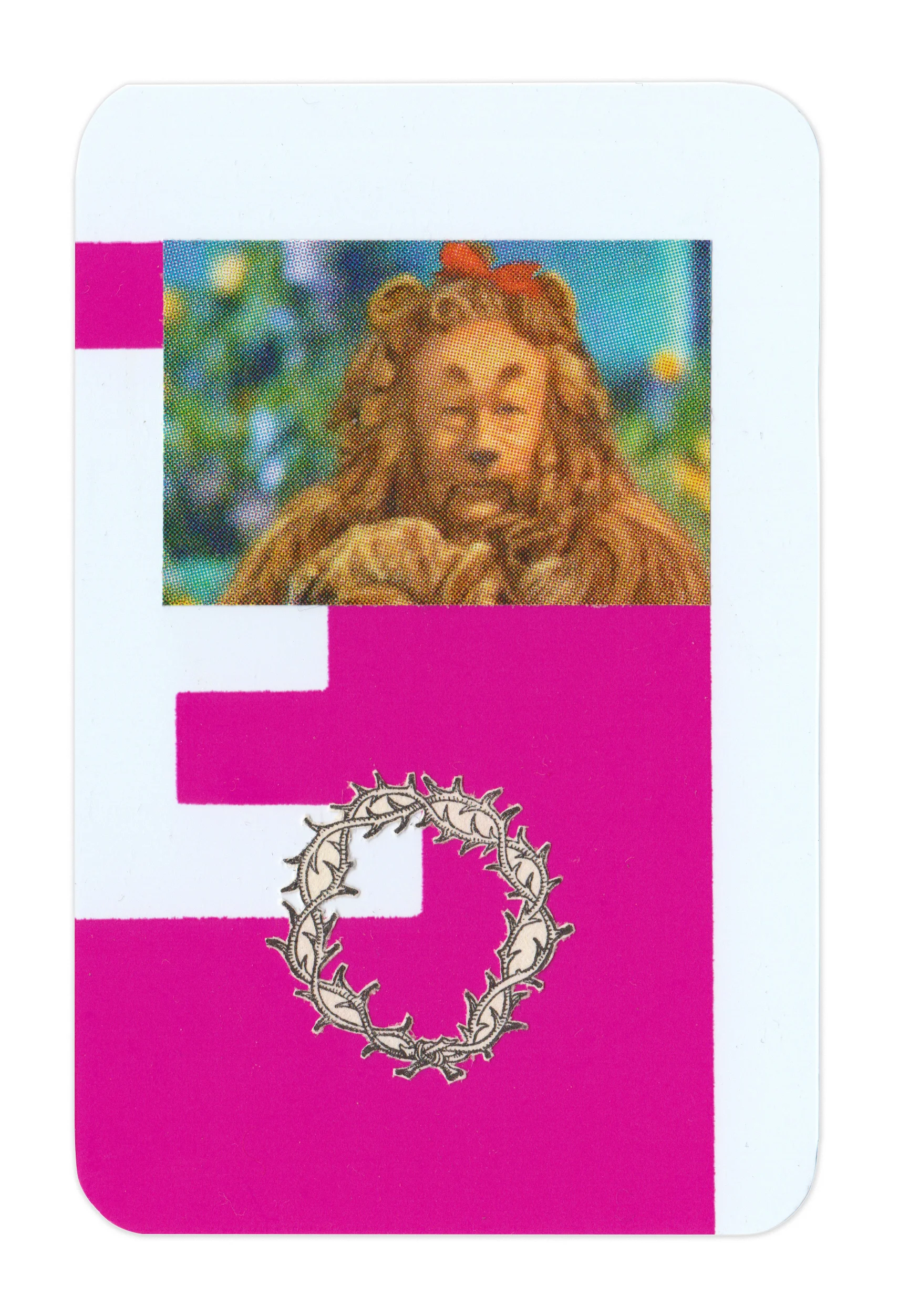 This is a set of fortune telling cards. They are created out of food wrappers, garage sale signs, images from The Wizard of Oz cut from a Corel Draw catalogue and images from the book Signs and Symbols in Christian Art. I wanted to call on the symbolism of The Wizard of Oz, the Gods of the marketplace and the religion of my childhood to try and chart the future of our contemporary lives.