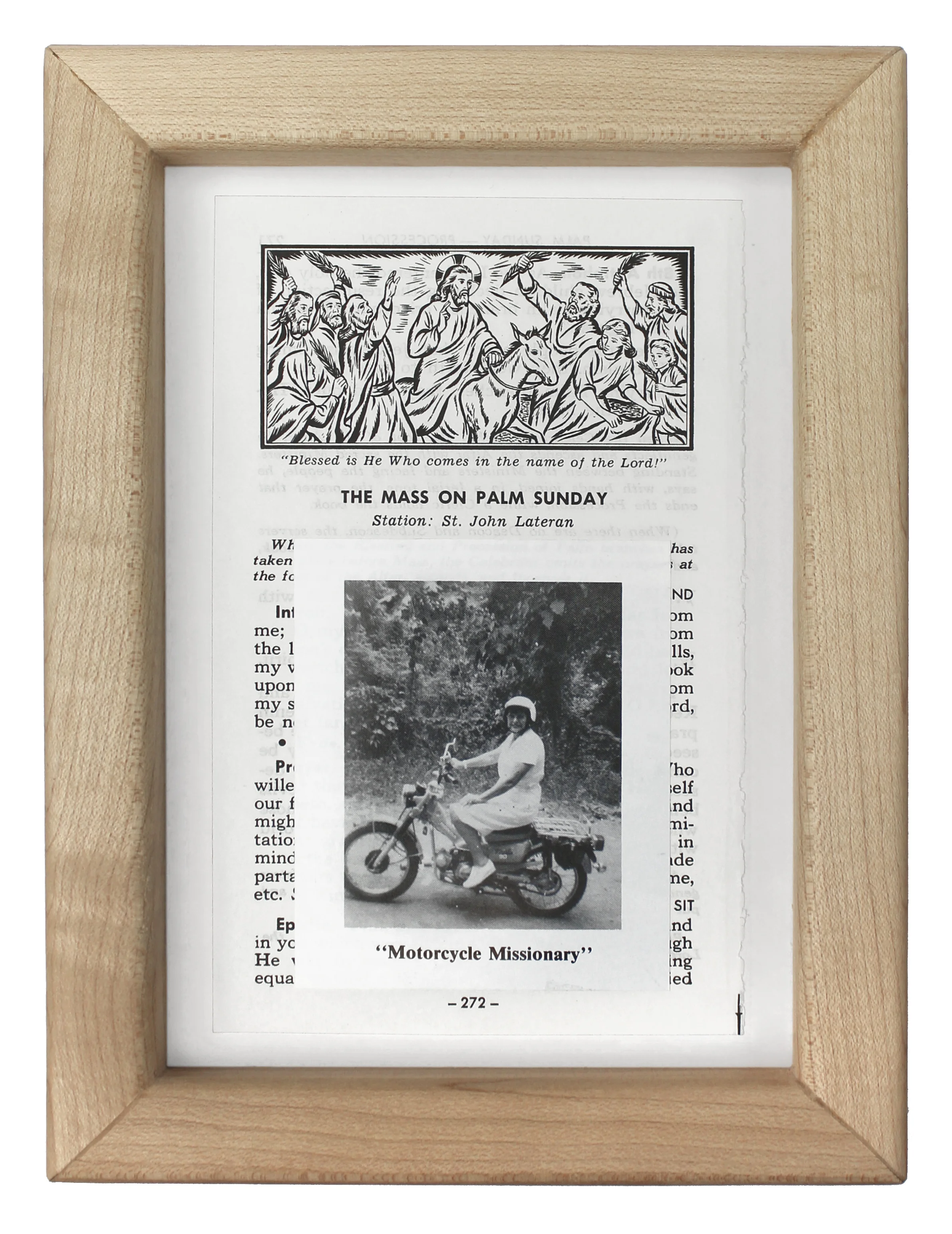 I was raised Roman Catholic, which has shaped my mythical and symbolic imagery. This series relates the didactic text of the Catholic Missal to other instructional and self-help narratives through visual similarities. I believe there is something valuable about the irrational immediacy of visual pleasure that is lost in the slower rational arguments of language.